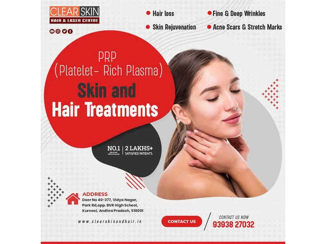 Clear Skin Hair & Laser Center in Kurnool is a healthcare facility that offers a range of cosmetic and medical services to help improve the appearance and health of patients' skin, hair, and body. They use advanced technologies and techniques, including laser therapy, to provide treatments that are safe, effective, and personalized to meet each patient's individual needs and goals. The center has a team of experienced and qualified professionals who work together to provide comprehensive and compassionate care to their patients. They are committed to helping their patients achieve clear, healthy, and beautiful skin, hair, and body.