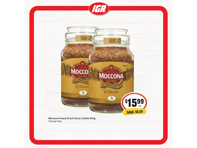 Moccona Freeze Dried Classic Coffee - Grocery Item, IGA Ravenswood in Launceston, Tasmania