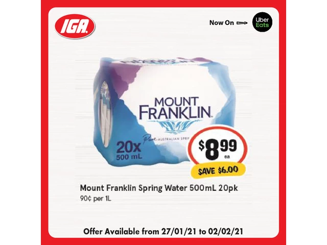 Mount Franklin Spring Water 500mL 20pk at IGA Ravenswood Supermarket