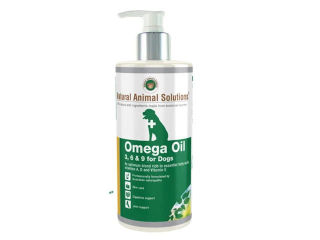 Natural Animal Solutions Omega 3, 6 & 9 oil is a rich dietary supplement for dogs. This joint and skin care product is finely blended with essential fatty acids, vitamins A, D and E. These dietary nutrients play a crucial role in maintaining skin and joint health. Natural Animal Solutions Omega Oil assists in reducing skin odour, promote digestion, maintain a healthy immune system and support joints. The oral solution helps support heart and brain healthy functioning.