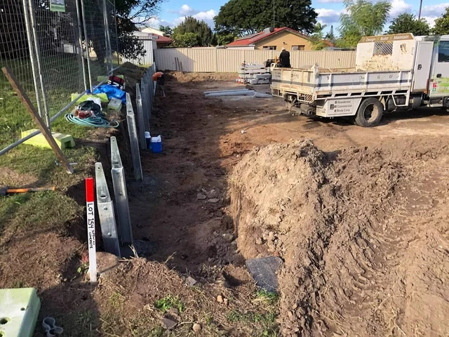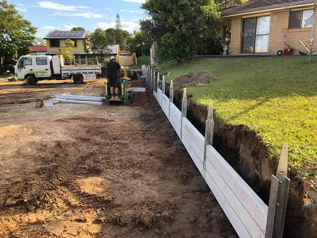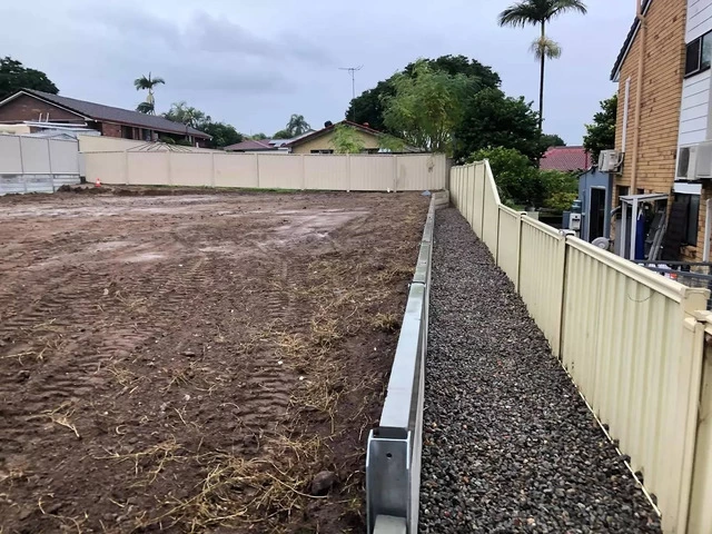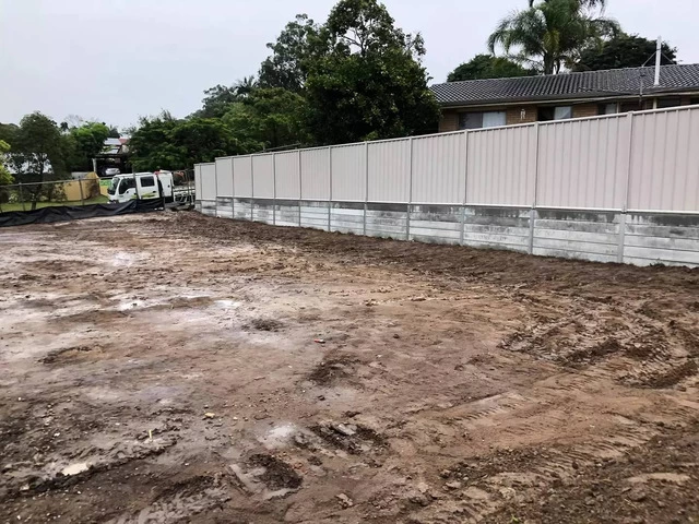 @rogers_little_loaders installed a 30m retaining wall 1m high with colorbond fence on top on the left and 30m concrete wall 600mm high on the right side. Complete drainage systems installed behind the walls for pressure relief.