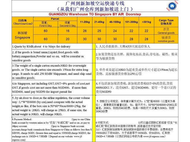 2)the following is DHL price from Guangzhou to Singapore, two days delivery, very fast