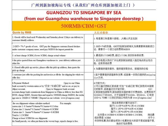 Our sea price is: 500RMB/CBM+GST (Charge min 1CBM)