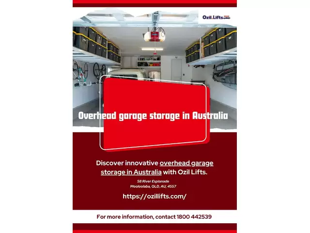 Overhead Garage storage Australia that is an innovative way of maximising space while keeping your garage clean. It is designed to make use of ceiling space that is ideal for storage of things such as tools, seasonal decorations as well as sporting equipment. With the motorised solutions offered by Ozil Lifts, accessing your possessions is easy and efficient. They offer sturdy elegant, effective, and fashionable storage solutions specifically tailored to Australian homes. Turn your garage into an efficient space with the help of clever design solutions for overhead storage that help free the floor and improve efficiency.