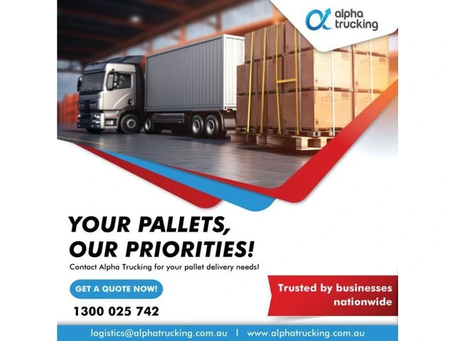 Alpha Trucking offer professional pallet delivery services for businesses. Safe transport, on-time delivery, and competitive rates across local and interstate routes. Perfect for bulk items, commercial goods, and warehouse transfers. Contact us 1300 025 742 for a free quote today!