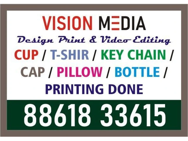 Vision Media is specialized in providing professional Design and Printing Services. digital printing, offset printing, Multicolor printing, ID Card, Multi Colour Lan Yard Pre-Ink Rubber Stamp, Polymer Rubber Stamp, Flex, Sign Board, Cup, Tshirt and Key Chain etc.