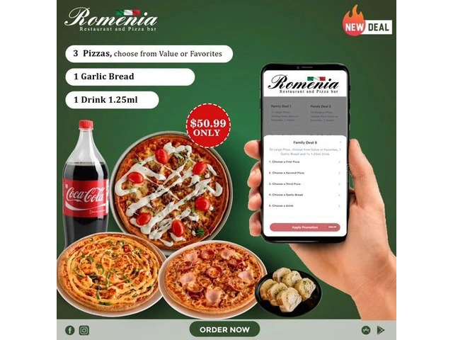 Don't settle for ordinary pizza delivery. Order your favourite meal from Romenia Restaurant and Pizza Bar tonight.