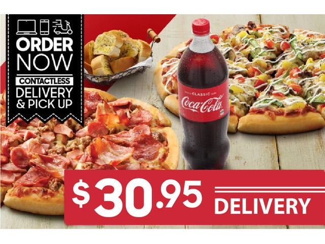 Order delicious Food Delivery online with 2 Large Pizzas + 2 Sides for $30.95 DELIVERED