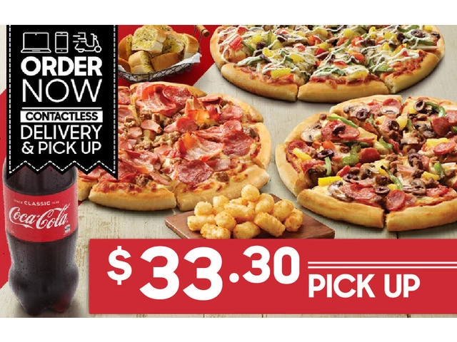 Order delicious Food Takeway online with 3 Large Pizzas + 3 Sides for $33.95 PICK UP