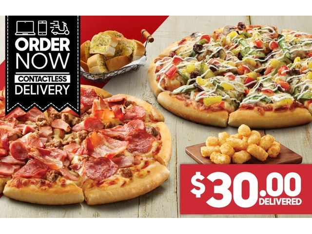 Order delicious Food Delivery online with 2 Large Pizzas + 2 Sides for $30 DELIVERED