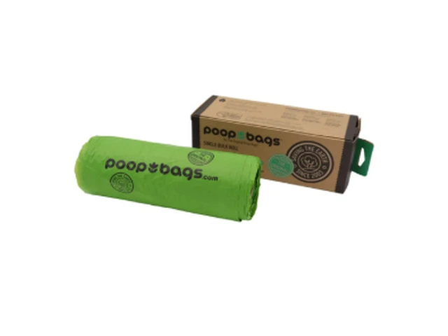 Poop Bags Bulk Roll by The Original Poop Bags are a large single roll containing 300 bags. It is ideal for stocking up as they are made from compostable biobased material. It contains 38% plant materials, recycled content and epi additive. These bags measure 8” x 13"" and the retail box has a perforated top to make the dispensing easy.