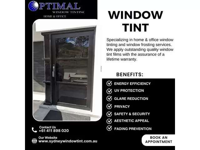 Enhance your property with premium window tinting in Sydney, offering privacy, UV protection, and energy efficiency. Transform your windows with sleek, professional finishes that elevate style and comfort. Optimal Window Tinting provides top-quality services tailored to meet your needs!