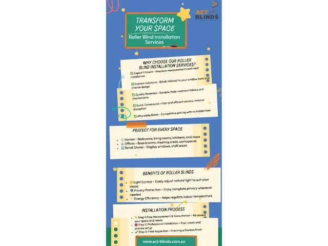 Looking to enhance your home or office with stylish and functional roller blinds? Our expert team in Canberra offers top-quality roller blind installation services at affordable rates. We handle everything from measurement to flawless installation, ensuring a perfect fit every time. Whether it’s for light control, privacy, or a modern look – we’ve got you covered!