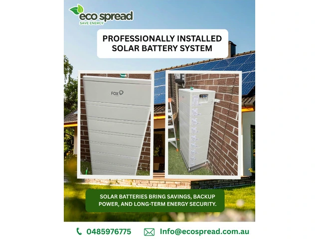 Cut power bills and gain reliable backup with professionally installed solar battery systems from Ecospread Melbourne. Secure long-term energy savings across Melbourne and nearby suburbs. 📞 0485 976 775 | ✉️ Info@ecospread.com.au