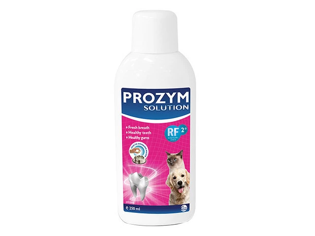 Prozym Dental Solution is a powerful anti-tartar weapon for cats and dogs. It is a palatable and refreshing solution that wards off dental plaque and bad breath. The product contains a unique active ingredient RF2 that helps effectively to fight against Biofilm– the first stage of dental plaque. An anti-biofilm active ingredient works well to control plaque and tartar build-up and prevent many serious oral problems in dogs and cats.
