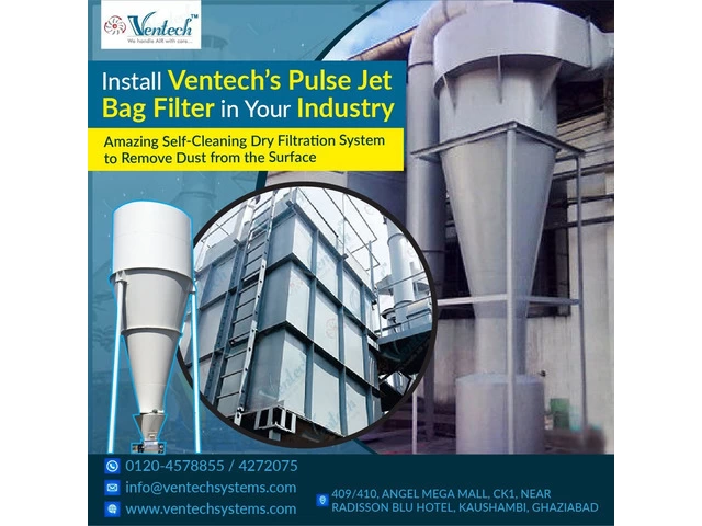 Ventech Systems offering best quality Pulse Jet Bag Filter mechanical equipment that is used to remove dust and particulate matters from the industrial surface. To enhance the productivity and efficiency, install a self-cleaning dry filtration system in your industry.