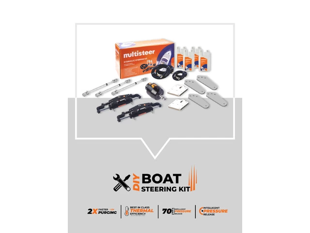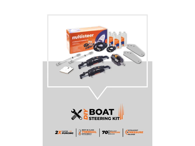 Best hydraulic boat steering system for quad outboards by Multisteer, ensures exceptional reliability and performance for an excellent boating experience. The Hydraulic Cylinder has a built-in two-way locking valve that eliminates rebound torque during torsion. High-strength nylon hose with quick-fit 1/4 pipe fitting for easy installation and multiple re-use. High-strength aluminum alloy casing ensures wear resistance and corrosion resistance, effectively preventing seawater erosion. The hydraulic pump has a shaft seal that can be easily replaced, this is a user-friendly design for use. The hydraulic helm pump has a compact internal structure and stylish exterior. For boats rated to a maximum of OH-1400-4E.