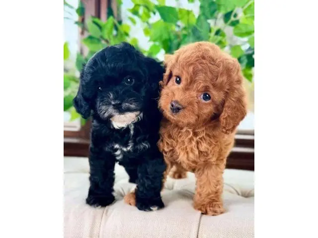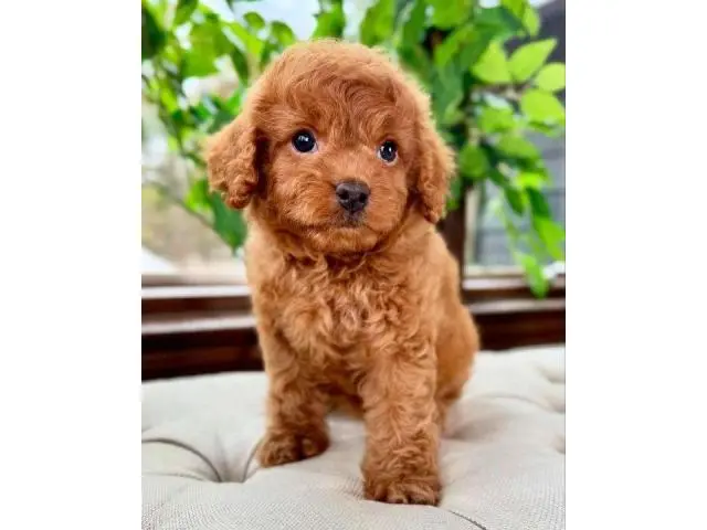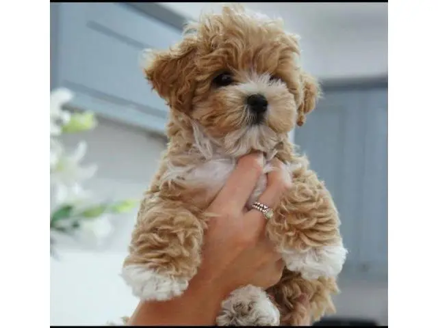 These gorgeous babies, 3 girls and 2 boys are ready now.. Mum is a cream and white Maltese and dad is a ruby red Toy Poodle. Pups are red in colour with white markings. Both are DNA tested and health clear. Pups will be ready to go now to their forever homes Pups are raised in our family home and get lots of love and affection. They are the most adorable pups and are growing quickly