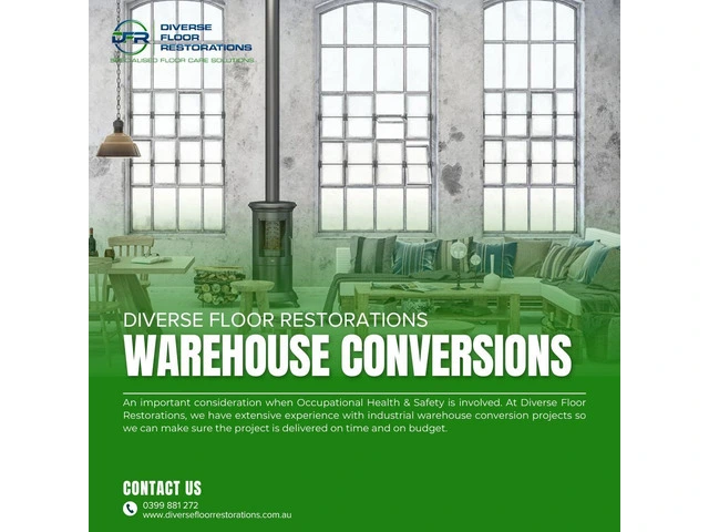 Diverse Floor Restorations specialises in transforming warehouses into functional, modern spaces through expert conversions. Whether you're looking to create a sleek office, retail area, or residential loft, our team delivers high-quality results that maximise your space's potential. Trust Diverse Floor Restorations to turn your warehouse into a stylish, versatile environment tailored to your needs.