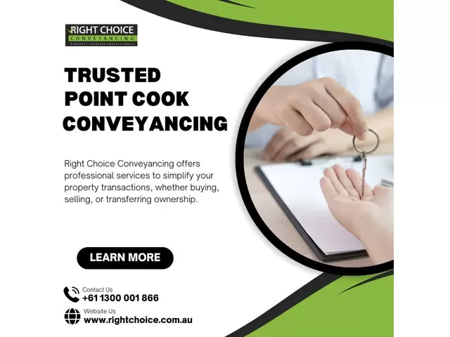 Looking for trustworthy property transfer services in Point Cook? Right Choice offers expert services that make property transactions easy and stress-free. When you're buying or selling, our dedicated team handles all legal aspects, from contract reviews to settlement management. With years of experience and local knowledge, Right Choice is your trusted partner in Point Cook conveyancing. Contact us today for a smooth property experience.