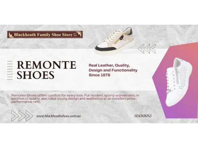 Walk with ease and confidence in Remonte Shoes available at Blackheath Shoes Store in the Blue Mountains, NSW. Designed in Europe, Remonte combines premium craftsmanship, modern fashion, and unbeatable comfort. Whether you need everyday wear or something special, our curated collection has you covered. Customers across the Blue Mountains choose Blackheath Shoes Store for quality brands and personal service. For more information, contact us at 0247878263