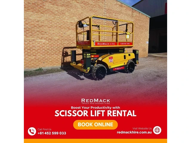 RedMack Equipment Hire offers reliable and cost-effective scissor lift rentals for construction, maintenance, and warehouse projects. With a range of sizes and models, Their lifts provide safe and efficient access to elevated work areas. Get the right lift for your job—contact RedMack Equipment Hire today!