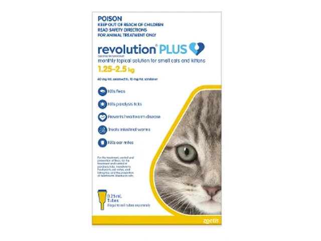 "Revolution Plus For Cats Effective Against Fleas Paralysis Ticks Heartworm Hookworm Roundworm Mites And Lice Revolution Plus for Cats - 6-in-1 Parasite Protection