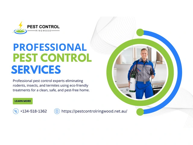 Pest Control Ringwood provides expert pest management solutions for homes and businesses. Our professional pest control services effectively eliminate termites, rodents, cockroaches, ants, and more using safe, eco-friendly treatments. We offer inspections, customized treatments, and long-term pest prevention. Trust our experienced team to keep your property pest-free with fast and reliable solutions. Contact us today for the best pest control service in Ringwood.