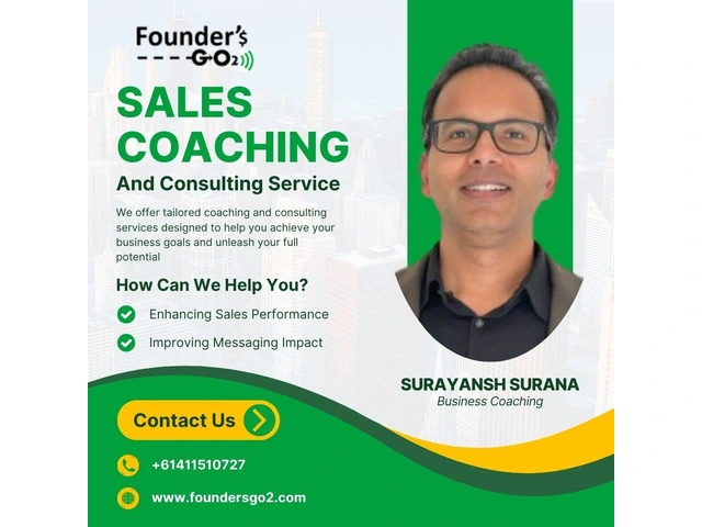 Are you looking for expert sales coaching in Australia? At Founders Go 2, we provide professional and personalized coaching solutions to help you master the art of selling and achieve remarkable growth in your business. Our tailored sales coaching programs will equip you with the skills and strategies to close deals effectively and increase revenue. For more details, contact us at +61411510727