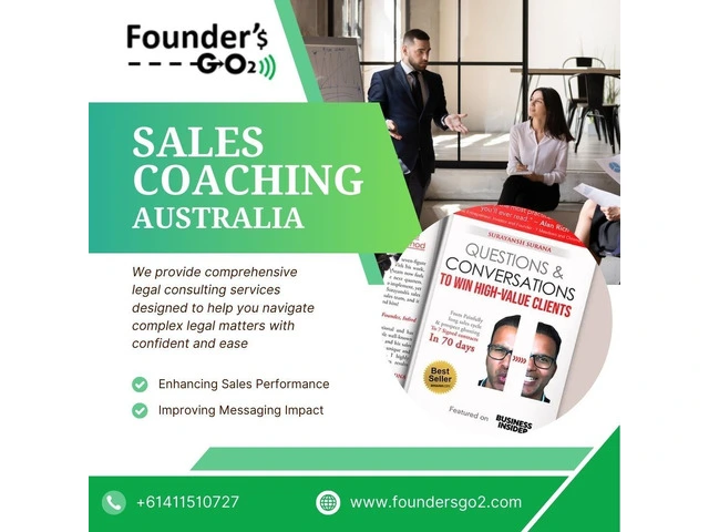 Take your sales performance to new heights with Founders Go2, Melbourne's premier sales coaching Australia. At Founders Go2, we empower businesses across Australia to boost revenue, refine impactful messaging, and implement lead-generation systems that deliver accurate results. Our personalized coaching programs are designed to optimize your pricing strategies, shorten sales cycles, and eliminate revenue concerns, ensuring sustainable growth for your business. For more information, call us at +61411510727