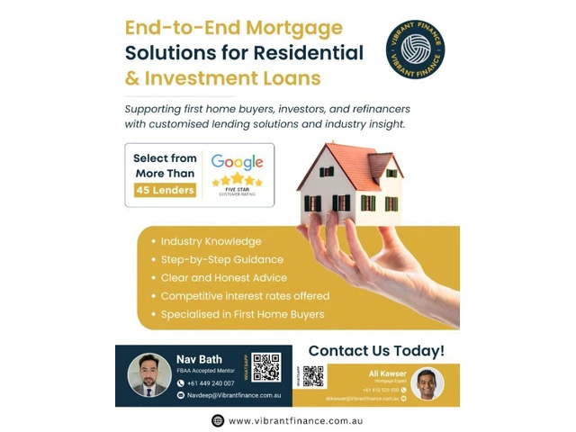 Step confidently into the property market with affordable investment loan solutions, guided by a reliable Melbourne mortgage broker. Vibrant Finance, based in Melbourne, Australia, offers you flexible loan solutions that will help you meet your investment goals. With our team of professionals, we offer competitive and easy access to reliable investment property loans Melbourne, whether you are a first-time or an experienced investor. Choose Vibrant Finance for confidence, clarity, and growth.