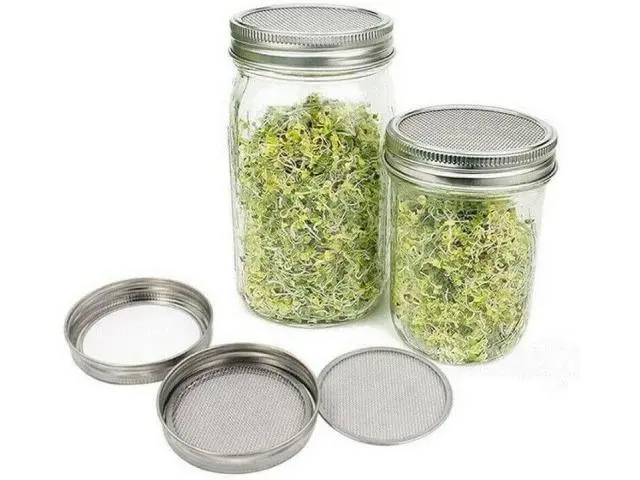 Grow fresh, healthy sprouts in your kitchen with this stainless steel seed sprouting lid kit, designed for wide mouth mason jars. The fine mesh screen keeps seeds off the counter and ensures proper air circulation to prevent mold, while also making rinsing easy. These lids can be sterilized by boiling or placed in the dishwasher for effortless cleaning. In addition to sprouting, they’re versatile enough to be used as sifters, strainers, and shaker lids for spices, sugar, flour, or potpourri.