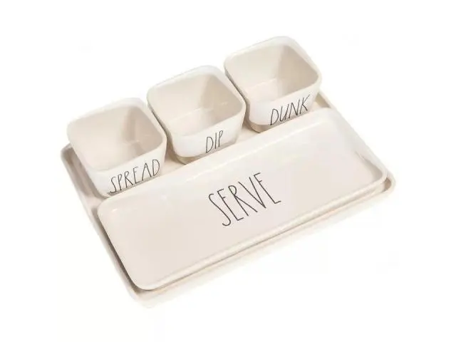 Versatile Serving Options: Includes three dip bowls and two trays ideal for presenting a variety of appetizers from dips to crudités ensuring a delightful guest experience.