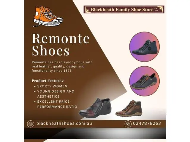 Find the perfect pair of Remonte Shoes at Blackheath Shoes Store in Blue Mountains, New South Wales. Known for comfort and timeless designs, Remonte footwear is crafted for everyday elegance and long-lasting wear. With breathable materials, cushioned insoles, and stylish finishes, these shoes are perfect for work and leisure. Our store takes pride in offering exceptional service and the latest Remonte arrivals. For more information, contact us at 0247878263