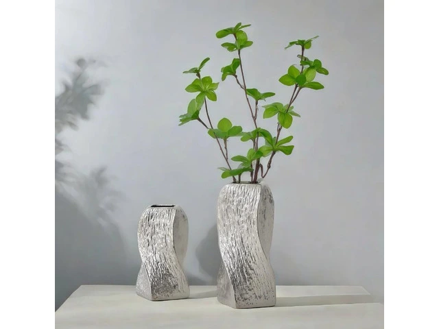 Introduce a touch of sophisticated artistry to your space with our stunning Modern Textured Ceramic Vase. Featuring a unique gently twisted or undulating silhouette and a captivating textured matte finish this vase is more than just a flower holder it's a statement piece.