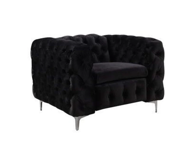 Single Seater Black Sofa Classic Armchair Button Tufted in Velvet Fabric with Metal Legs in Brisbane, Queensland
