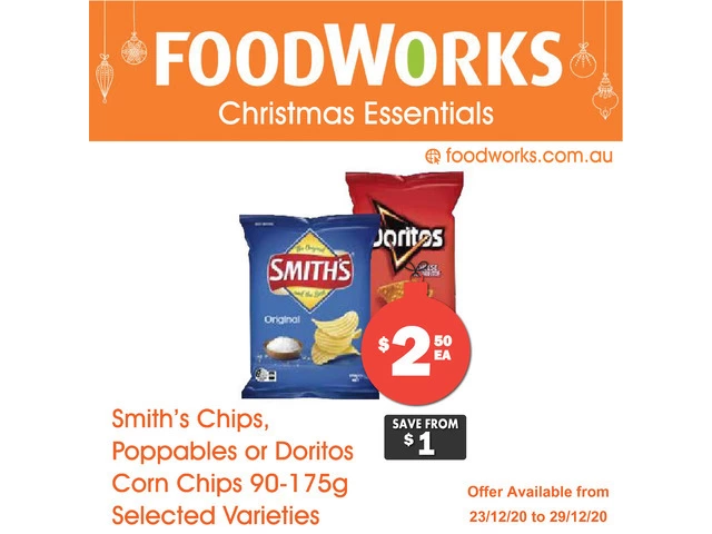 Smith's Chips , Poppables or Doritos Corn Chips - Essential Item, FoodWorks Clovelly in Sydney, New South Wales