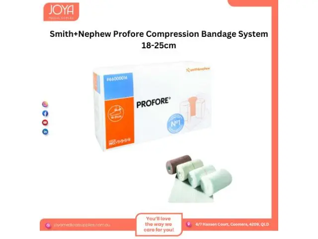 Shop online Smith+Nephew profore compression bandage system 18-25cm in Australia from Joya Medical Supplies. The Profore bandage is a convenient presentation of the clinically effective 4-layer bandaging system for venous leg ulcer management.
