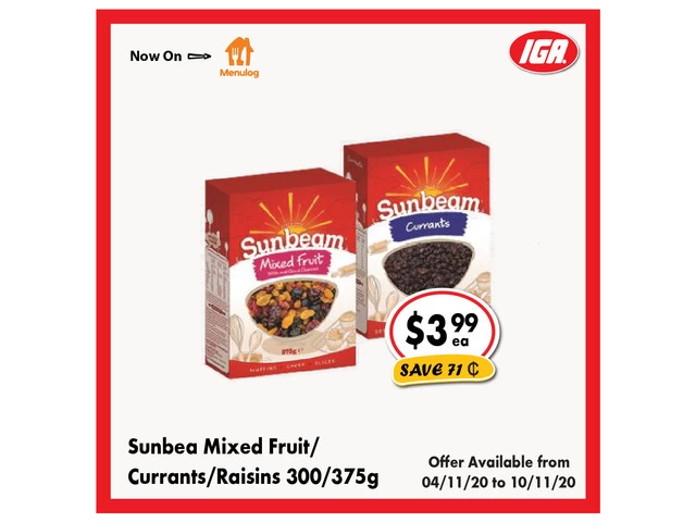 Sunbea Mixed Fruit/Currants/Raisins - Grocery Item, IGA Ravenswood in Launceston, Tasmania