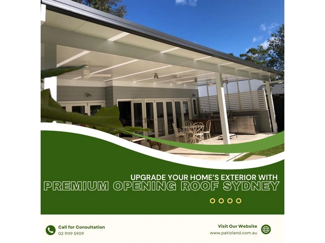 Patioland's Opening Roof Sydney offers innovative and stylish solutions to transform your outdoor living space. Our custom opening roofs provide flexibility, allowing you to enjoy your patio year-round, regardless of the weather. Elevate your outdoor experience with Patioland's expert installation and design—contact us today to create the perfect open-air retreat for your home.