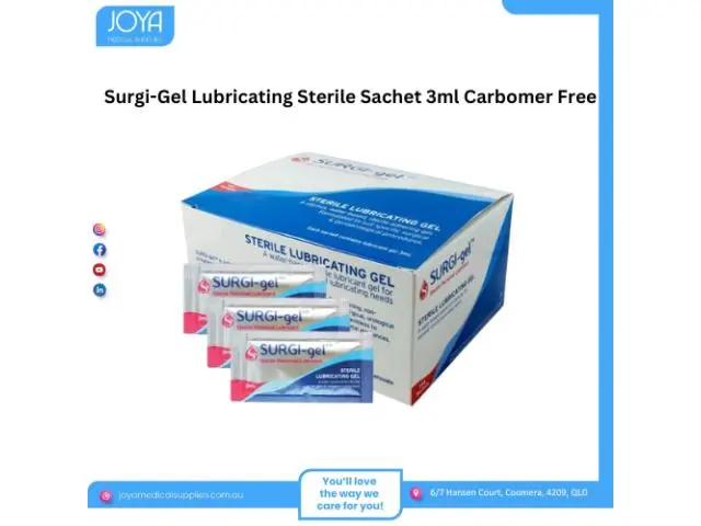 Get Surgi-gel lubricating sterile sachet 3ml carbomer free in Australia at Joya Medical Supplies. Surgigel is a sterile, greaseless, transparent, water-based, non-staining, non-irritating lubricating gel. Explore today!