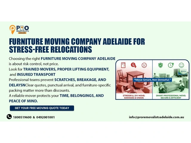 Hiring a professional Furniture Moving Company Adelaide ensures your valuable furniture is handled with the utmost care from start to finish. Our skilled movers use high-quality packing materials and proven techniques to protect sofas, beds, dining sets, and delicate items during every move. Whether you are relocating a home or an office, we plan each step carefully to guarantee timely and damage-free delivery. As a reliable Furniture Moving Company Adelaide, we focus on efficiency, safety, and customer satisfaction, making your furniture relocation smooth, organised, and completely hassle-free.Get in Touch