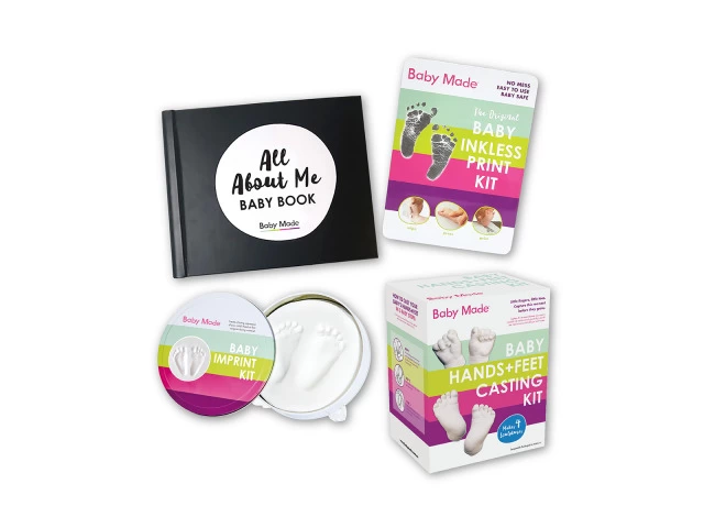 Celebrate the arrival of your little one with Baby Made's Deluxe Newborn Baby Gifts. Our kit includes everything you need to create beautiful keepsakes that will last a lifetime. Capture every precious detail with our award-winning Baby Inkless Print Kit, while our Baby Hands & Feet Casting Kit allows you to make 3D sculptures of those tiny hands and feet. The 'All About Me' Baby Book is perfect for recording memories and milestones, and our Imprint Kit creates flawless impressions of your baby's hands or feet. To order, visit our website: https://www.babymade.com.au/products/newborn-baby-value-gift-pack or call us at (03) 9509 4060.