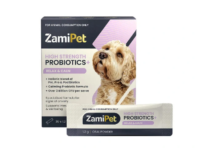 ZamiPet High Strength Probiotics + Relax & Calm Oral Powder is a holistic blend of prebiotics, probiotics and postbiotics in a convenient and portable single-serve sachet. The formula is developed by Australian vets especially for dogs showing signs of anxiety due to separation, environmental changes, or social stress and to support general gut health.
