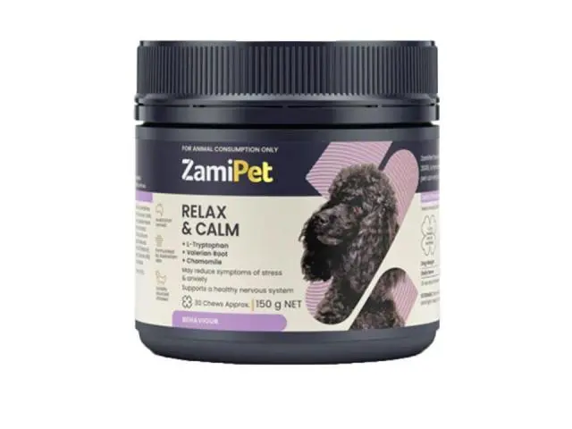 ZamiPet Relax & Calm is a great supplemental aid for reducing stress and anxiety in dogs. These tasty, Australian-made dog chews are ideal to give during stressful conditions like separation, fireworks, thunderstorms, grooming sessions, travelling, and other stress inducing situations. This anxiety supplement for dogs is made using a non-drowsy formula, which helps to calm nervous canines without making them feel sleepy. It is formulated without using any artificial colours or flavours.
